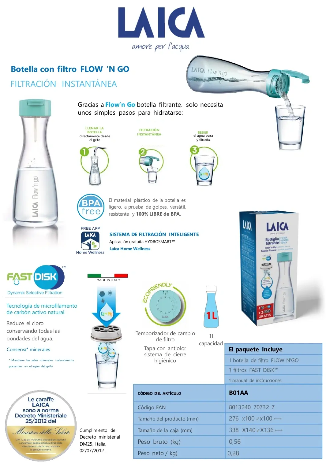 Inicio Aqua Optima Purificación de Agua Botella filtrante Laica Flow ‘n Go