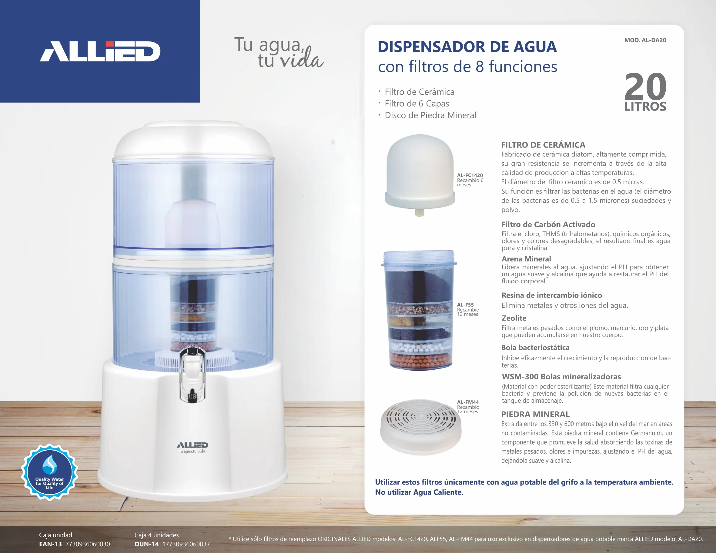 Utilizar este filtro únicamente con agua potable del grifo a la temperatura ambiente.