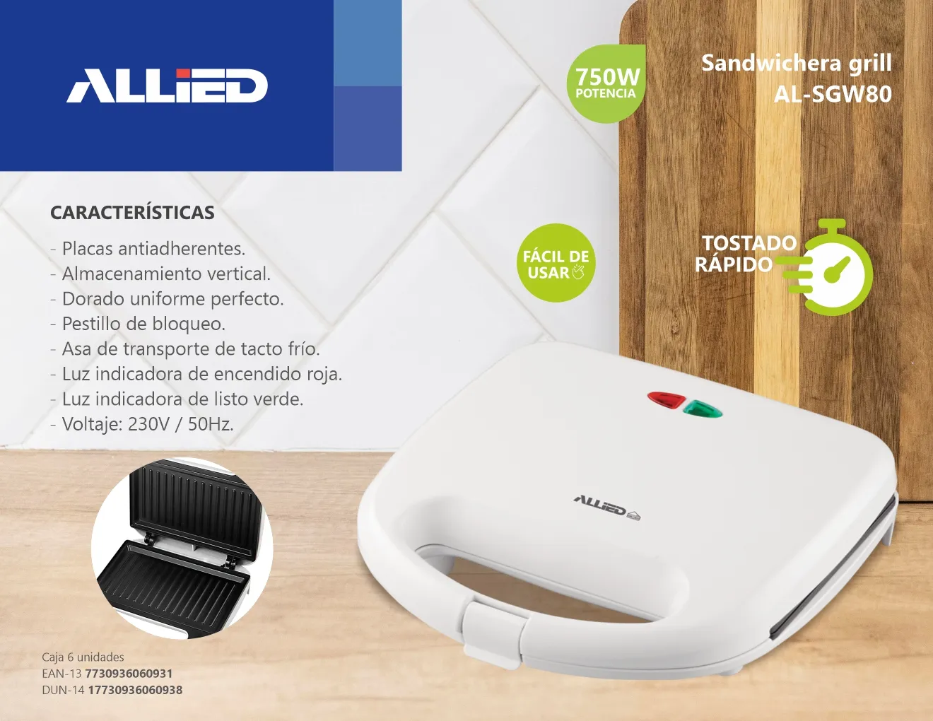 Sandwichera Grill 750W.